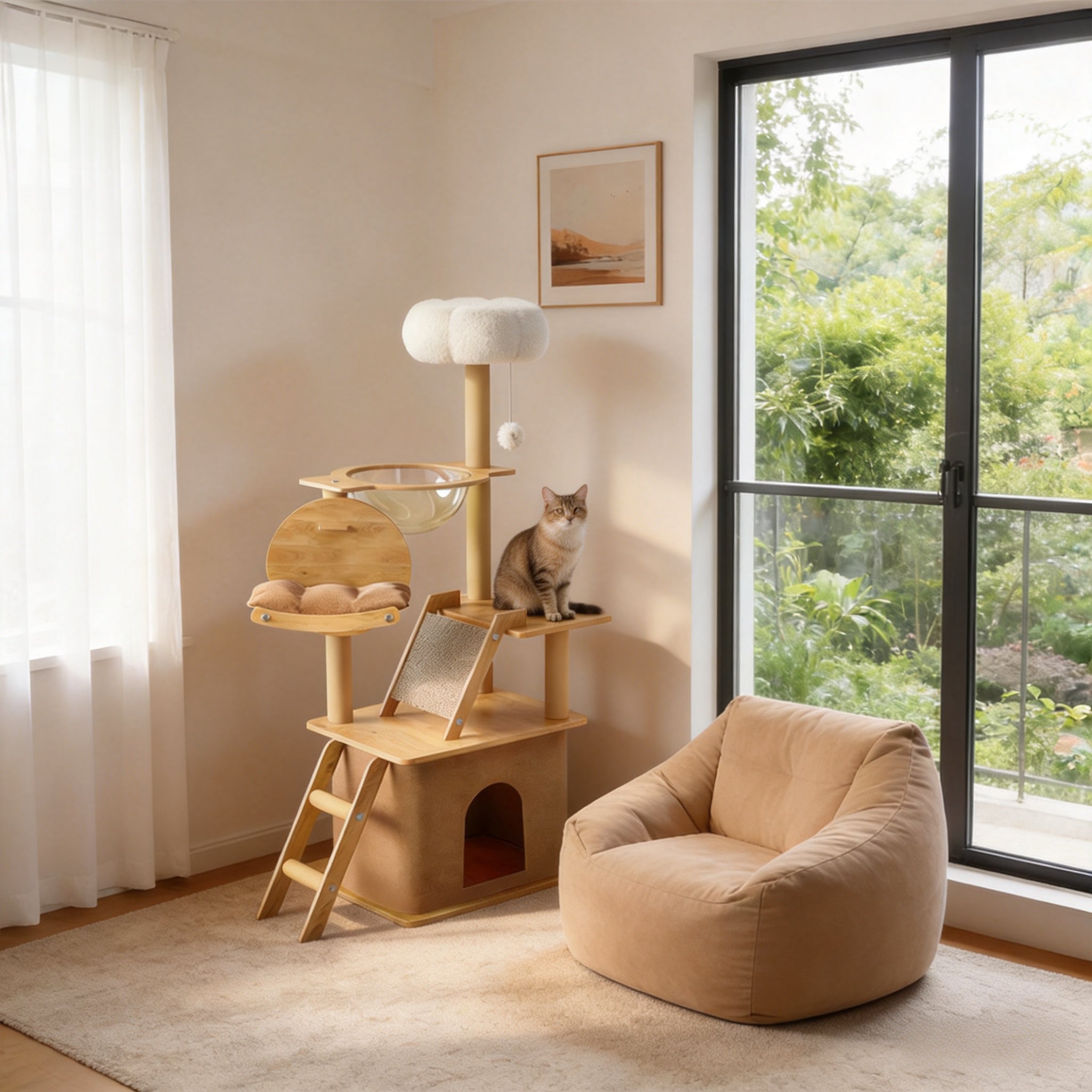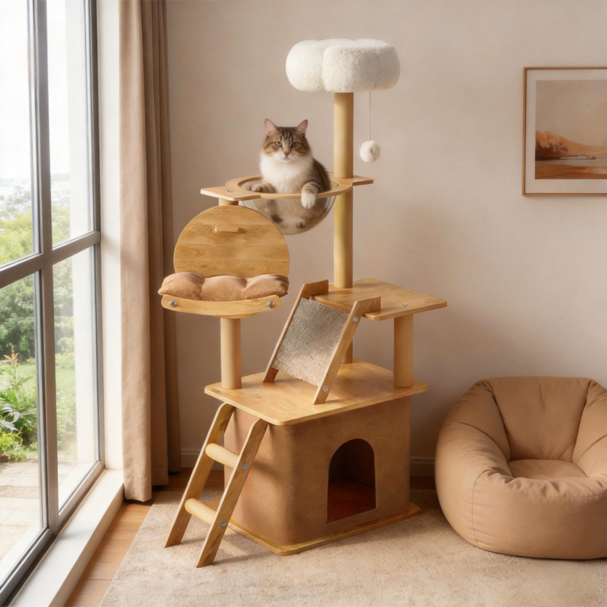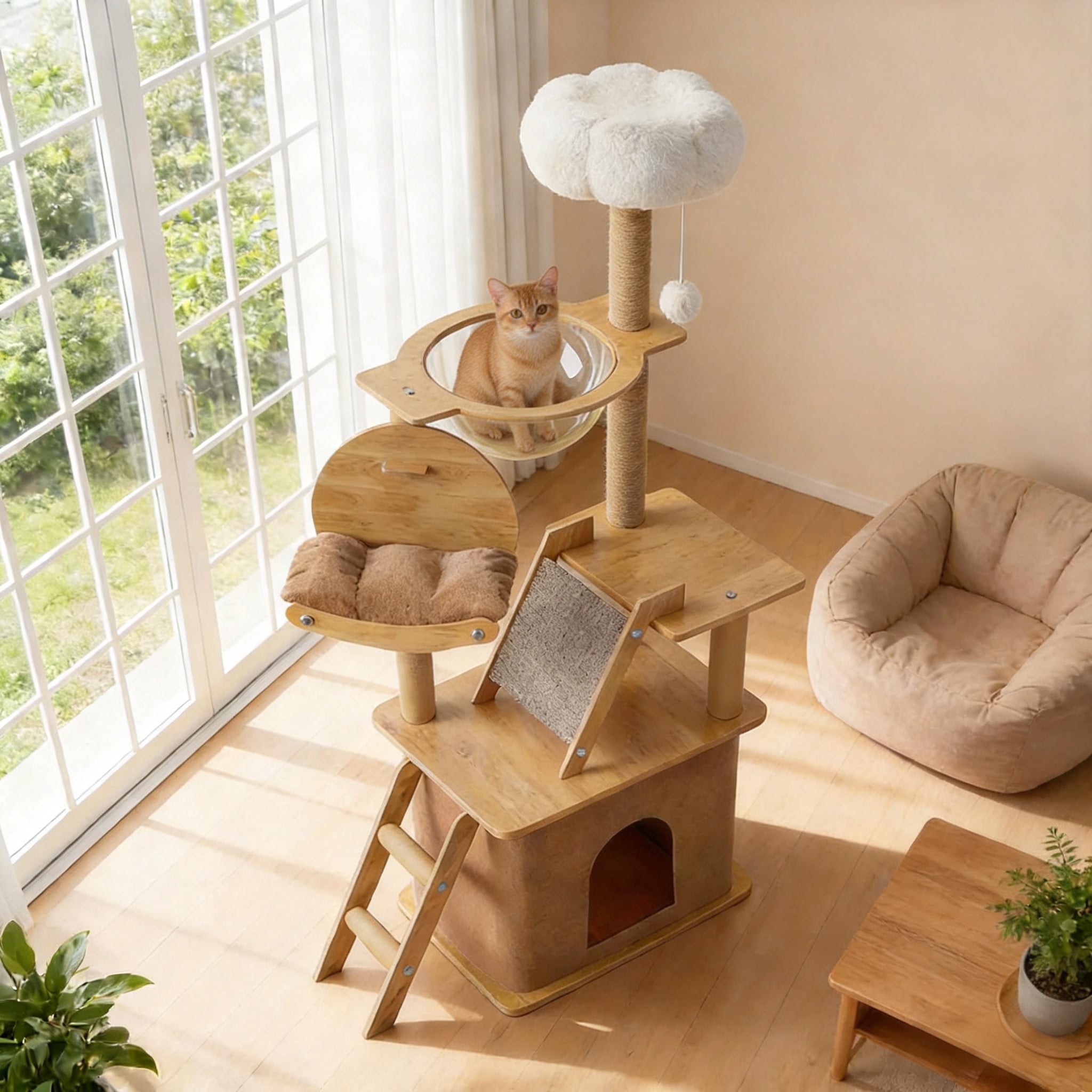 Multi-Functional Design: Combines climbing, playing, scratching, and resting with a ladder, plush perch, hideaway, and large transparent capsule.