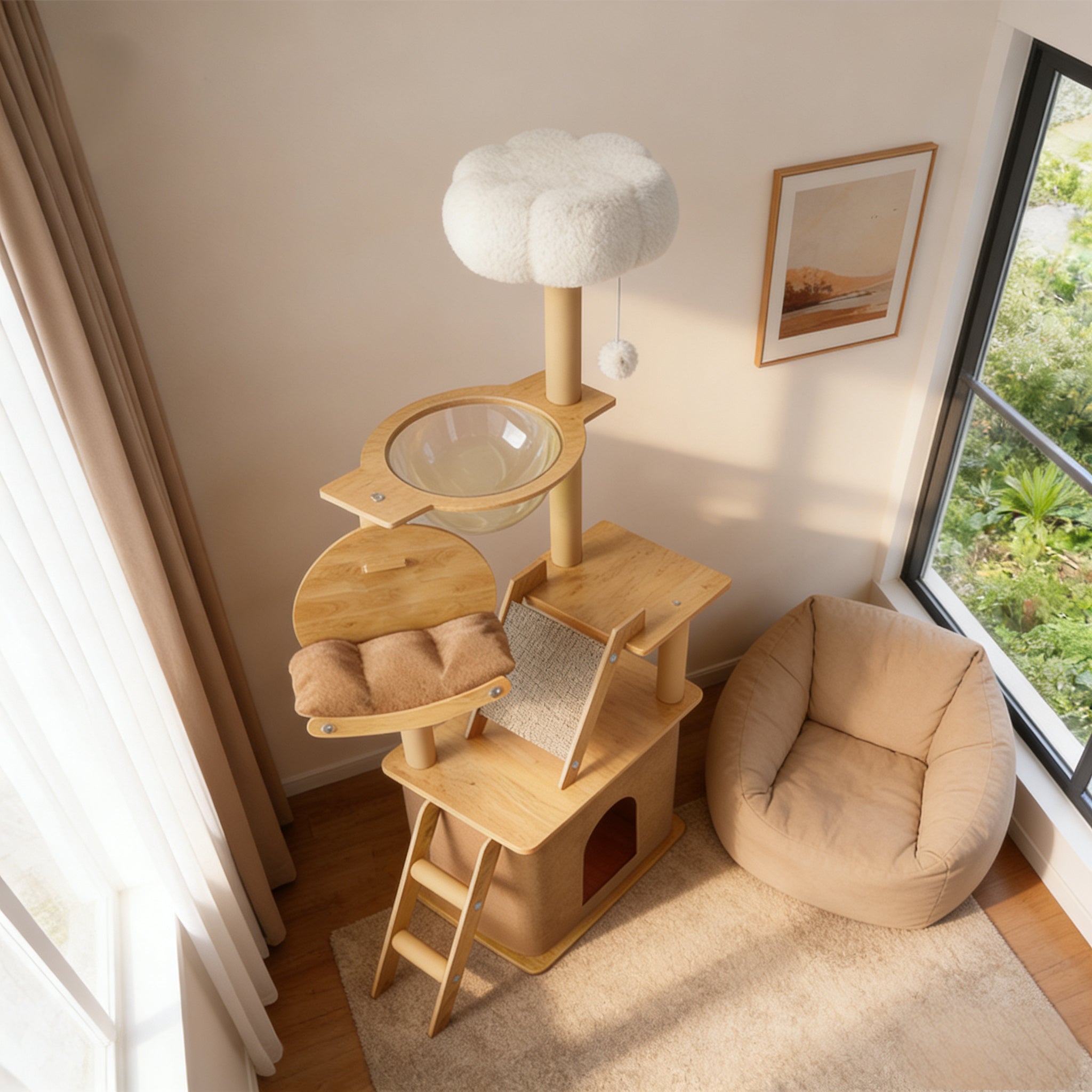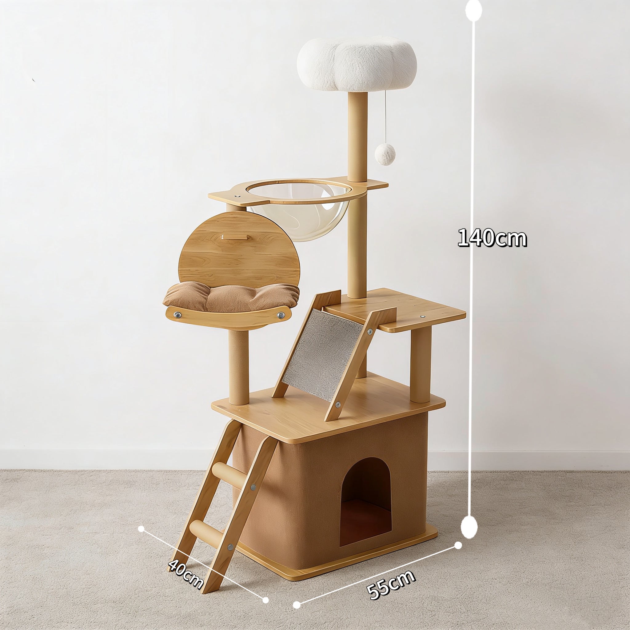 Spacious & Comfortable: Large transparent capsule and wide platforms provide cozy spaces for lounging; dimensions: 140 Γ 55 Γ 40 cm.