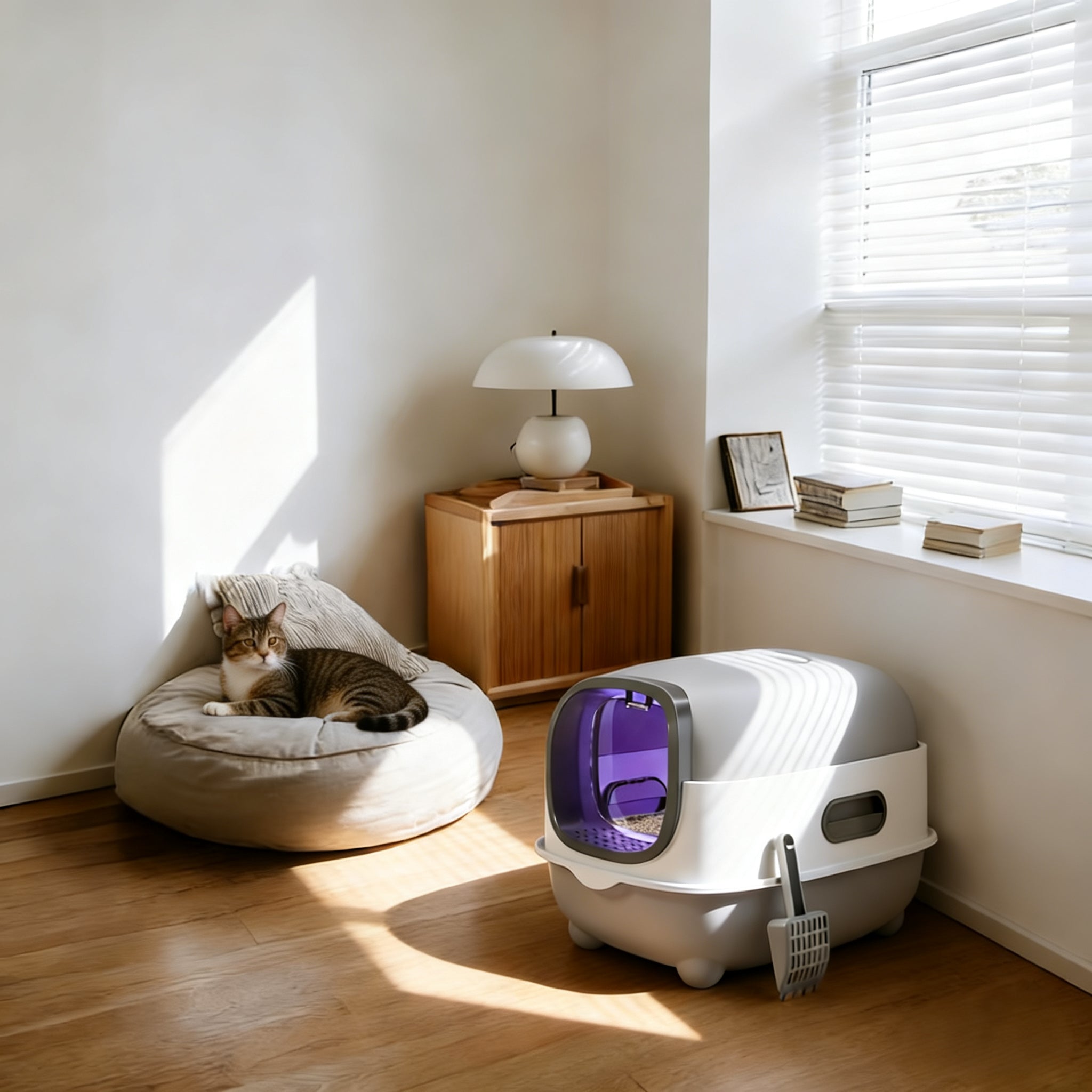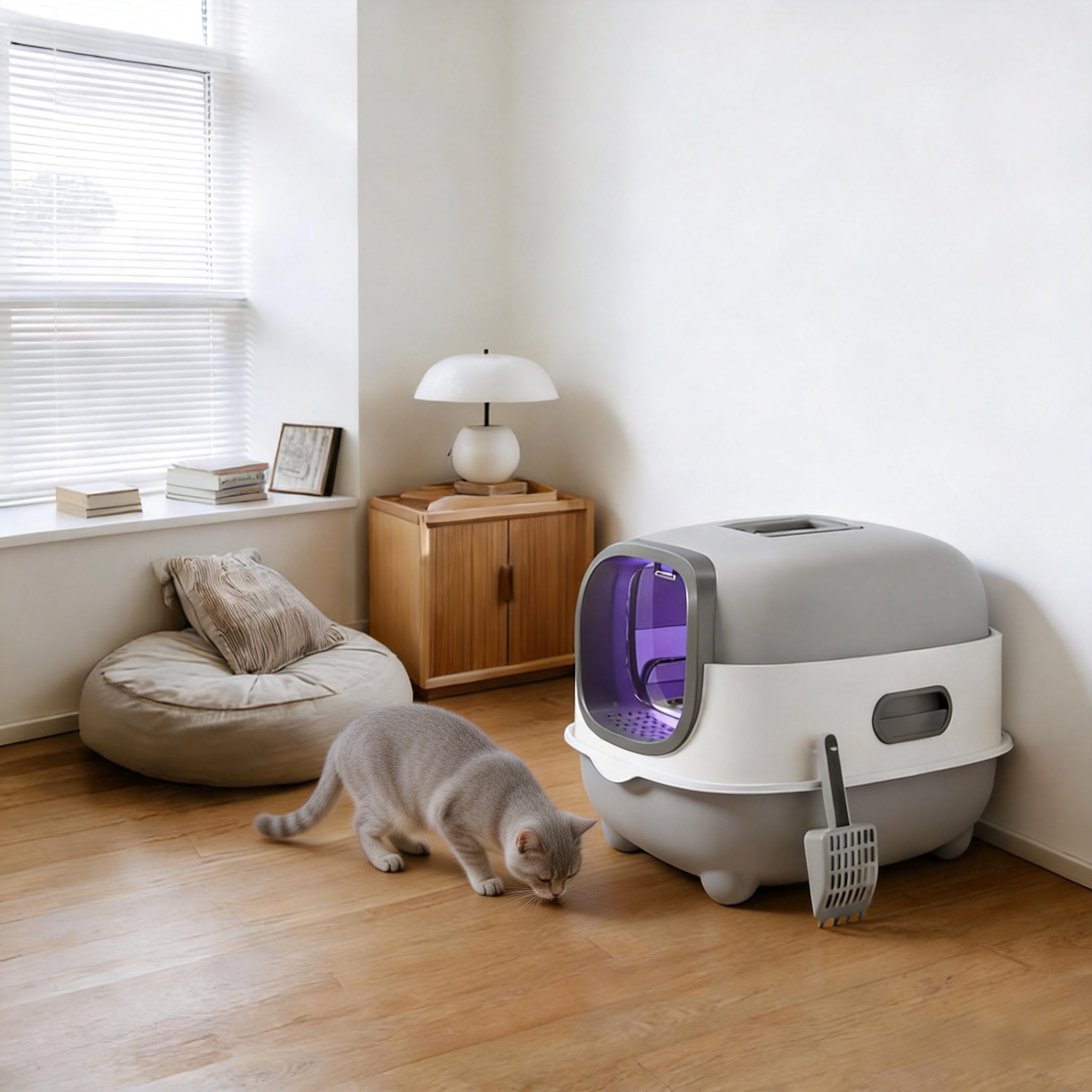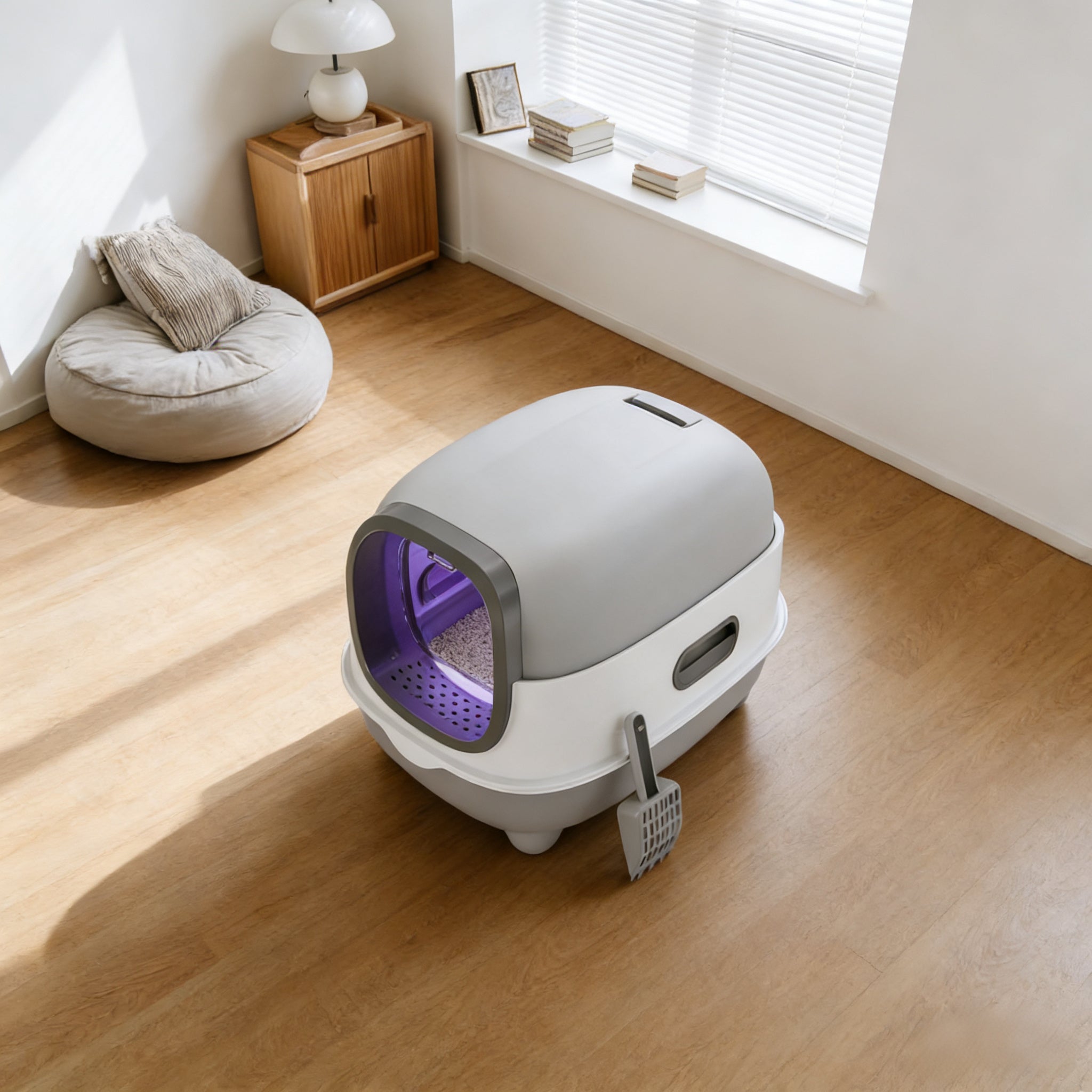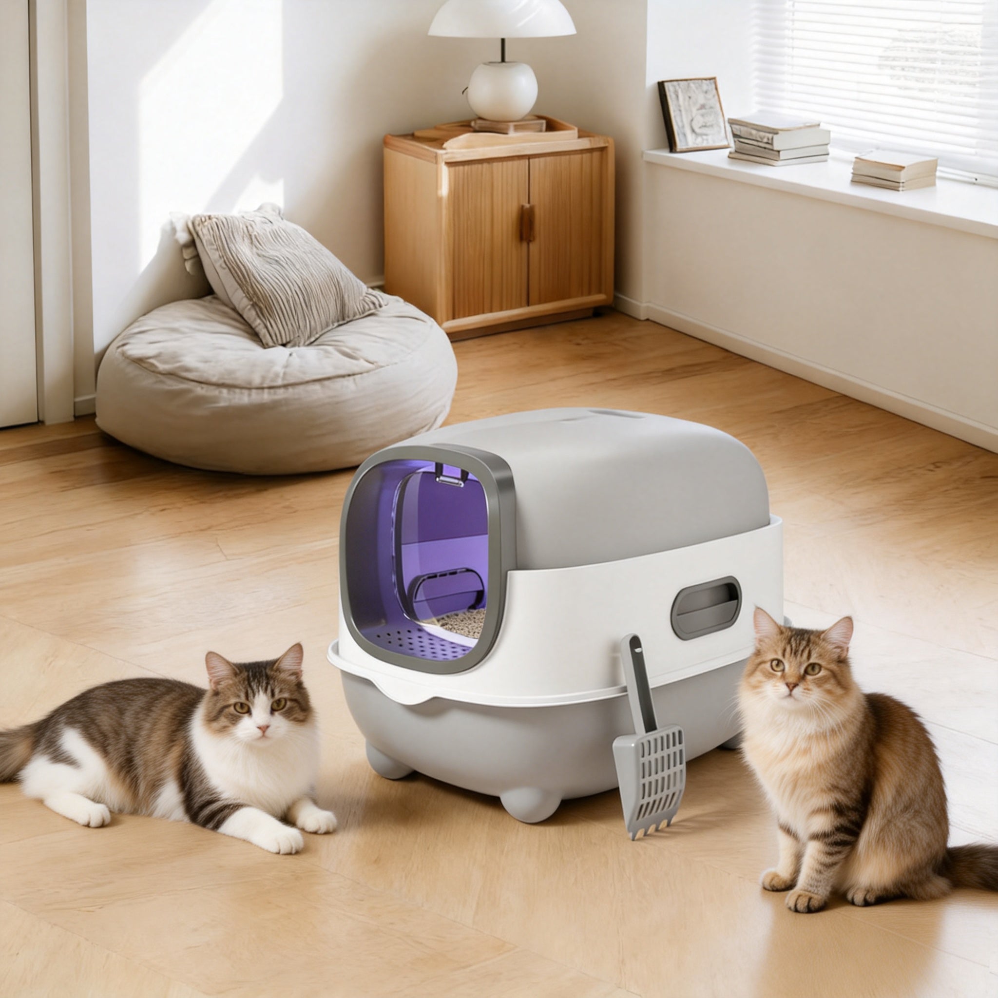 Designed with a low-light environment that balances privacy, light transmission, and safety. It gives your cat a quiet, secluded spot to do their business—no more feeling exposed—while still letting in enough light to keep them calm (no fear of dark, enclosed spaces). Your kitty will feel secure and relaxed every time.