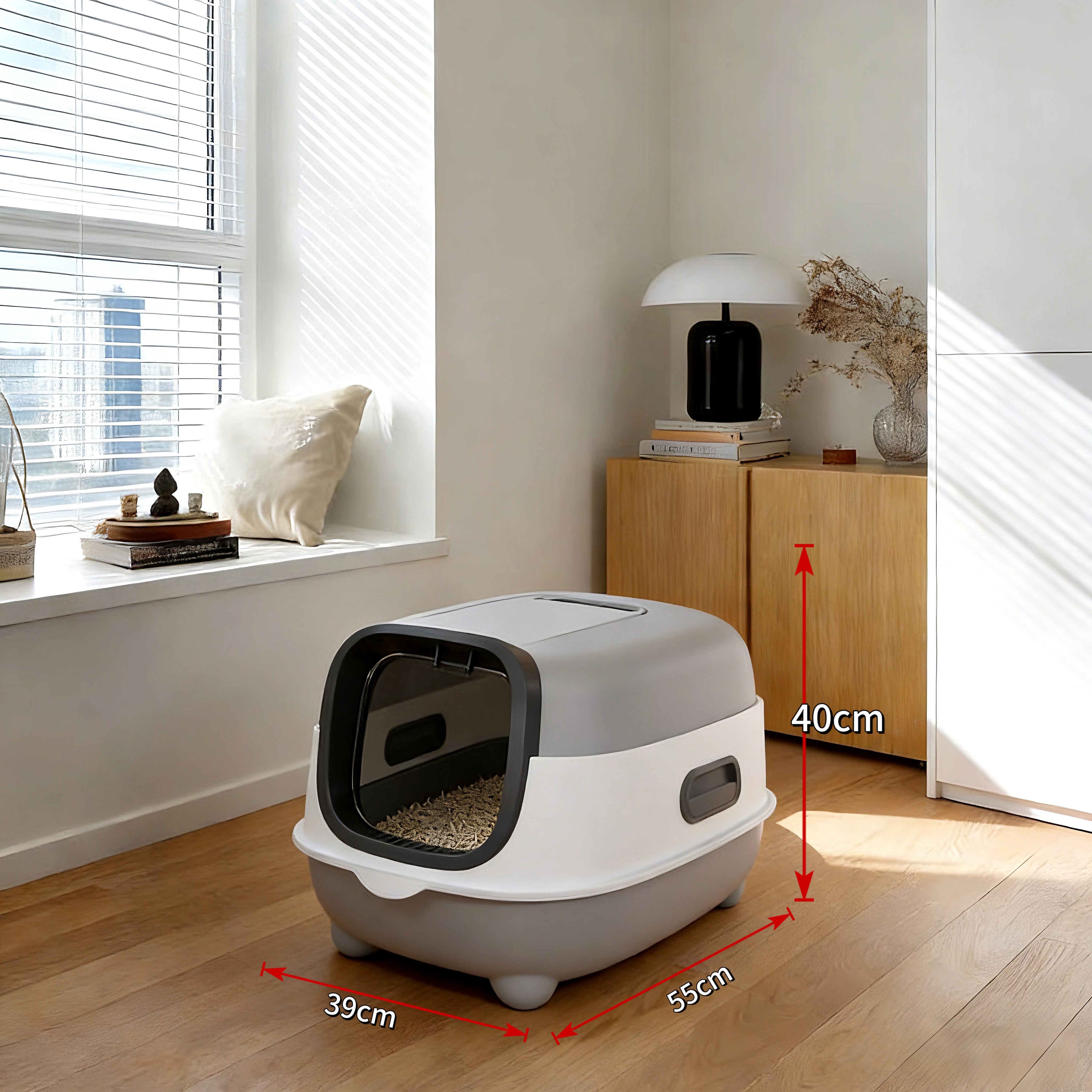 This enclosed cat litter box isn’t just a practical solution—it’s a way to respect your cat’s needs while keeping your home tidy. The combination of extra space, strong odor control, litter-trapping design, and cat-centric privacy makes it a must-have for any cat parent. Give your furry friend the comfortable, private potty space they deserve!